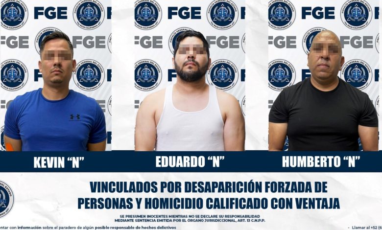 MEXICALI, B.C., MAR. 06 DE 2026.- Como resultado del fortalecimiento de las carpetas de investigación y la presentación de elementos probatorios contundentes, se obtuvo la vinculación a proceso de tres agentes de la Policía Municipal de Mexicali, por su probable responsabilidad en delitos de desaparición forzada de personas cometidos durante el año 2022, informó la Fiscalía General del Estado.