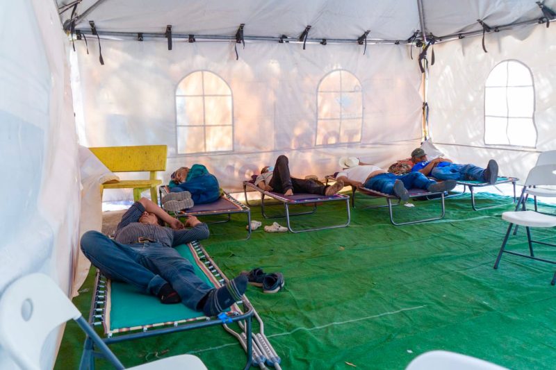 El titular de la dependencia, doctor Adrián Medina Amarillas, informó que se extendió el espacio con el fin de ingresar camillas y sillas para las áreas de descanso, que ahora tiene una capacidad para 60 personas. Asimismo, continúan los servicios de consulta médica, regaderas, agua potable y Suero Vida Oral gratuitos, para grupos de personas que diariamente visitan el punto.