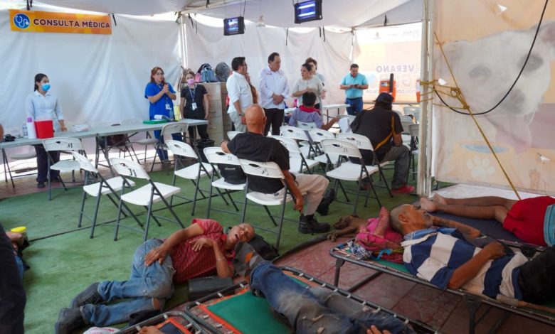 Medina Amarillas indicó que, de mayo a la fecha, se han registrado alrededor de 17 mil atenciones en el punto habilitado con regaderas, área de descanso, consulta médica y zona para hidratación tanto de las personas como de mascotas.