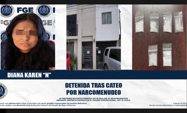 MEXICALI, B.C., SEPT. 12 DE 2025.- Como parte de las acciones de combate al narcomenudeo, la Fiscalía General del Estado (FGE), a través de la Fiscalía Especializada en Narcomenudeo, aseguró droga y detuvo a una mujer durante un cateo ejecutado en la colonia Venustiano Carranza.