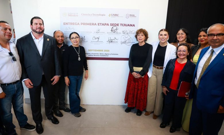TIJUANA, B.C., SEPT. 18 DE 2025.- En un acto encabezado por la gobernadora Marina del Pilar Avila y la secretaria de Ciencias, Humanidades, Tecnología e Innovación, Rosaura Ruiz Gutiérrez, fue inaugurada la primera etapa del campus Tijuana de la Universidad Nacional «Rosario Castellanos», una institución de educación superior que fue descrita como la tercera en su tipo a nivel nacional.