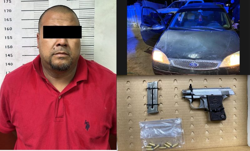 Dicha persona fue intervenida por agentes municipales luego de incurrir en una infracción de tránsito a bordo de un vehículo Ford Focus Hatchback de color negro, modelo 2005. Debido a su actitud agresiva hacia los uniformados, fue sujeto a una inspección de rutina en la que le localizaron un arma de fuego tipo pistola corta de calibre .22, con un total de 8 cartuchos útiles.