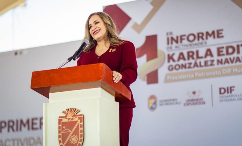 MEXICALI, B.C., NOV. 13 DE 2025.- En un acto celebrado en el Centro Recreativo Cultural Ángeles de Puebla, la presidenta del Patronato DIF Municipal, Karla Edith González Navarro, presentó su primer informe de actividades, en presencia de la alcaldesa de Mexicali, Norma Bustamante, así como de funcionarios estatales, municipales y enlaces comunitarios.