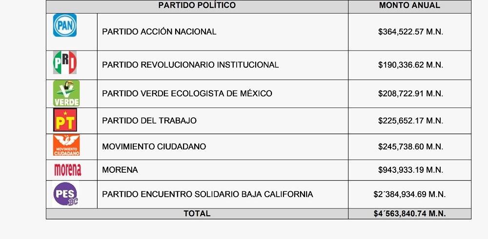 En los números: El IEEBC valida una proyección financiera que entrega al PESBC la «rebanada grande» del pastel (más de la mitad del dinero destinado a todos los partidos).