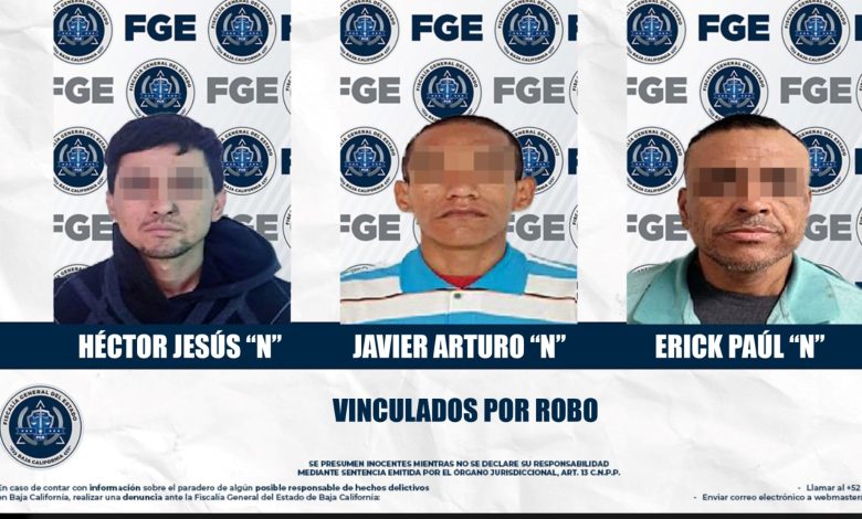 MEXICALI, B.C., DIC. 03 DE 2025.- Las Unidades de Investigación con Detenidos Oriente y Robos Poniente de la Fiscalía Regional Mexicali, lograron la vinculación a proceso de tres hombres relacionados en incidentes de robo.