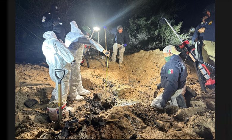 MEXICALI, B.C., ENE. 09 DE 2026.- Los restos óseos que corresponderían a cuatro personas han sido encontrados dentro de las dos fosas localizadas ayer jueves en las inmediaciones de la Colonia Miguel Alemán, en una zona cercana a la divisoria entre Mexicali y el vecino municipio de San Luis Río Colorado, a la orilla del Río Colorado.