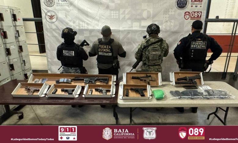 TIJUANA, B.C., FEB. 11 DE 2026.- Un cargamento de más de 30 kilogramos de narcóticos, principalmente fentanilo, metanfetamina y heroína, junto con armas de fuego de diversos calibres, fueron decomisados en Tijuana por las Fuerzas Especiales de Seguridad de Baja California