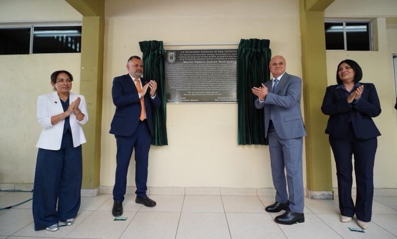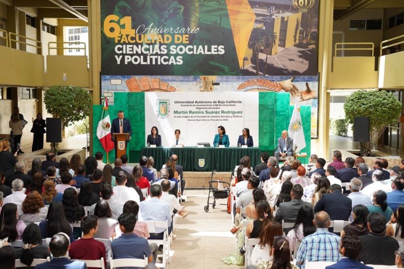 MEXICALI, B.C., ABR. 10 DE 2026.- La Universidad Autónoma de Baja California (UABC) otorgó, de manera póstuma, al doctor Martín Ramiro Suárez Rodríguez la distinción al Mérito Universitario, mediante la asignación de su nombre al aula magna de la Facultad de Ciencias Sociales y Políticas.