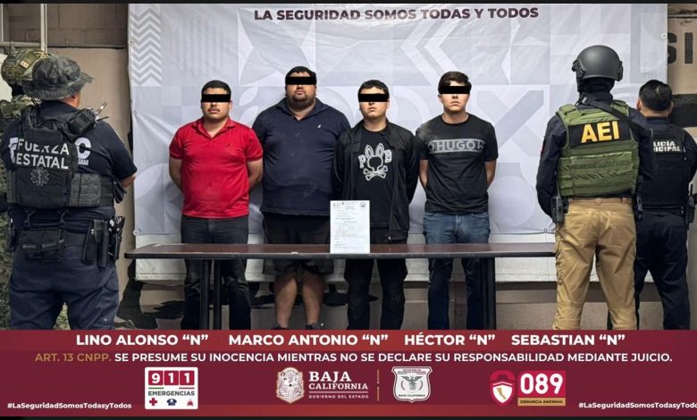 Los detenidos son Marco Antonio «N», de 20 años, originario de Michoacán; Lino Alonso «N», de 21 años; Sebastián «N», de 19, y Héctor, de 26 años, los tres últimos oriundos de Mexicali.